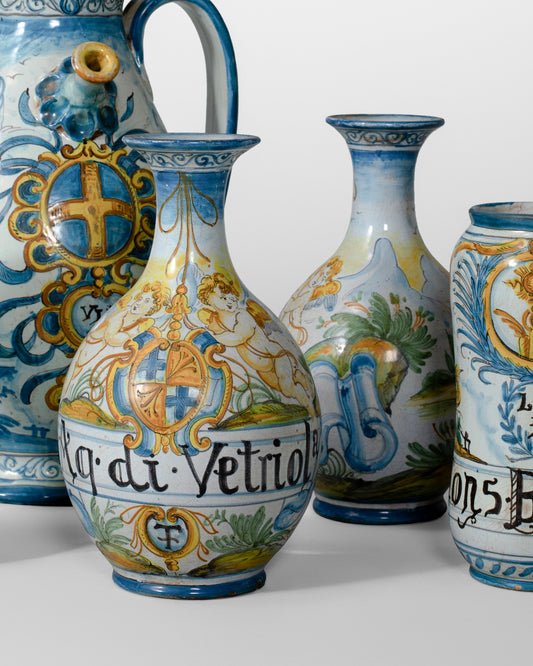 ENSEMBLE DE POTS D’APOTHICAIRE EN FAÏENCE POLYCHROME ITALIENNE, XVIIIᵉ SIÈCLE