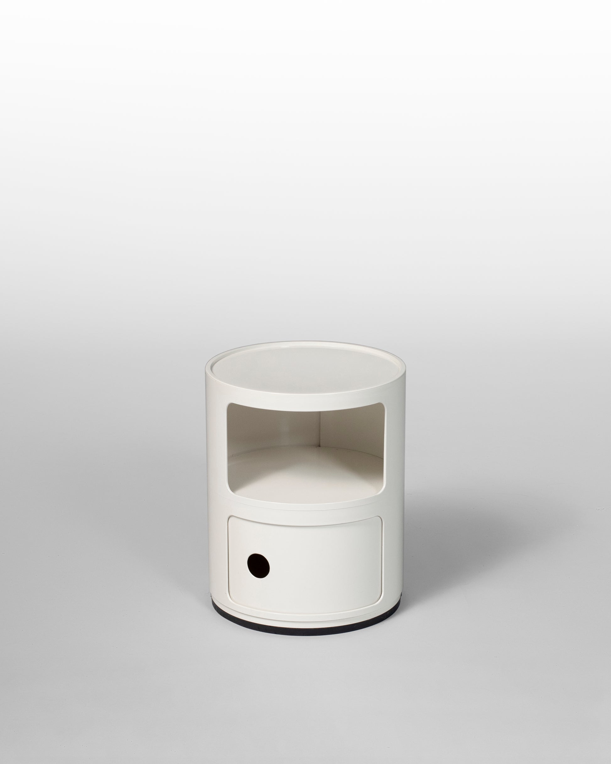 Réalisé en ABS moulé, il est devenu une référence du design moderne grâce à sa forme cylindrique dotée de portes coulissantes, pensée pour répondre à une variété de besoins de rangement. Alliant fonctionnalité et modernité, il s’intègre harmonieusement dans n’importe quel espace tout en conservant une esthétique minimaliste.